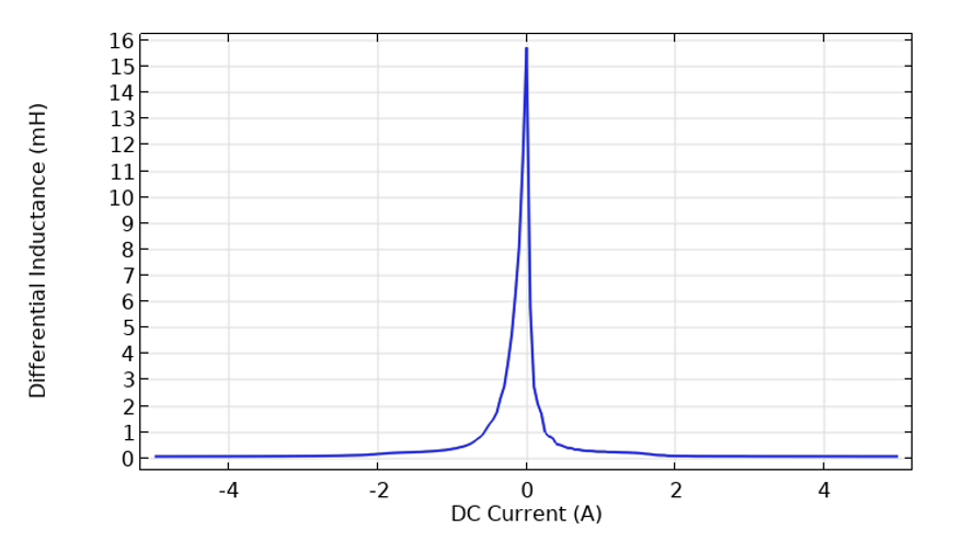 A 1D plot with DC Current (A) on the x-axis and Differential Inductance (mH) on the y-axis.